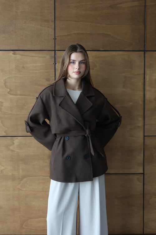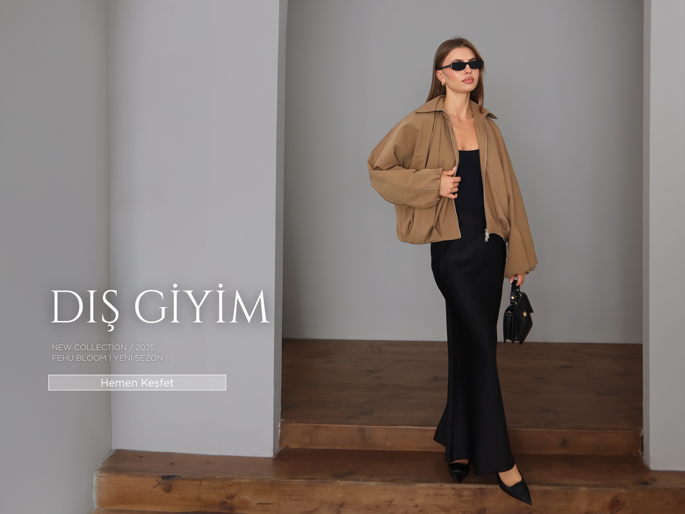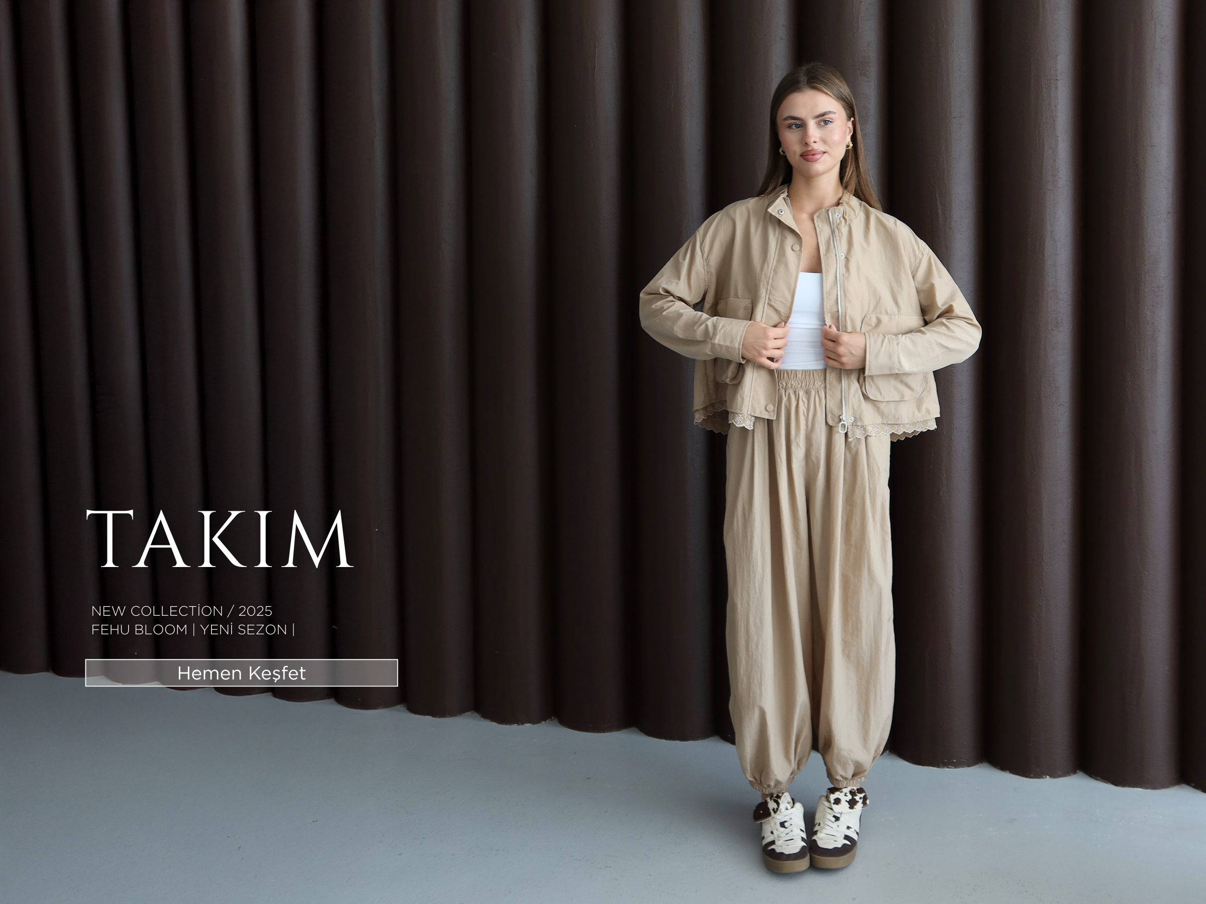 Kahverengi Düğmeli Ekose Desenli Gömlek Etek Takım