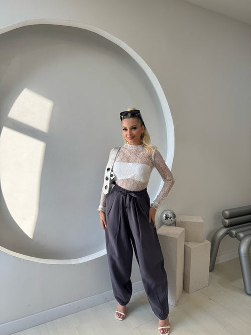 Beyaz Pantolon Crop Takım -