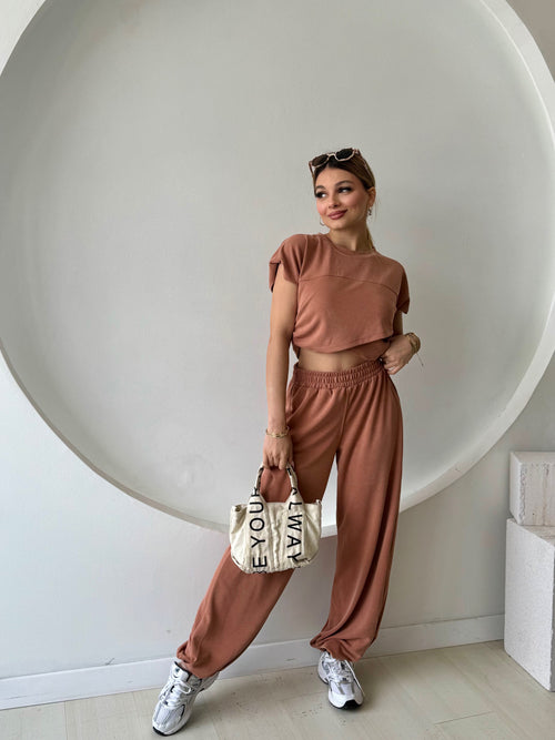 Kahverengi Açık Yaka Kuşaklı Gömlek -