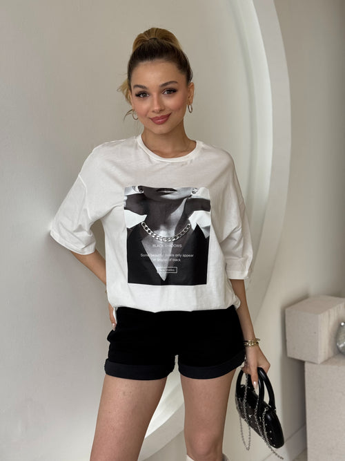 Düşük Omuzlu Desenli Gömlek -